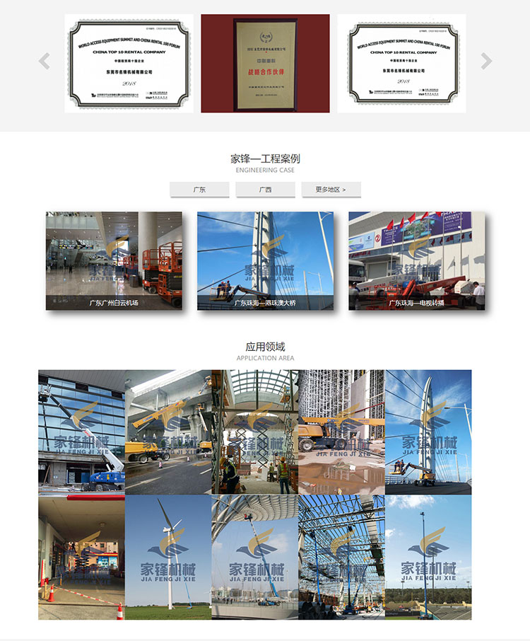 東莞市家鋒機(jī)械有限公司成立,開始了高空車租賃市場的探索,不斷擴(kuò)充機(jī)隊(duì)規(guī)模。